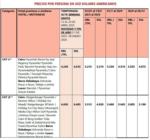 Llegada al Aeropuerto Internacional de El Cairo. Tramites de visado, inmigración y aduana y con asistencia de nuestro representante, Traslado al hotel de la categoría elegida, Llegada al hotel, distribución de las habitaciones y alojamiento.