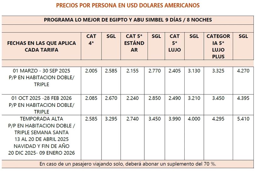 Desayuno. A la hora acordada traslado por carretera a Aswan, llegada y traslado al aeropuerto internacional de Aswan para tomar el avión con destino a El Cairo. Llegada a El Cairo y traslado al hotel de la categoría elegida.