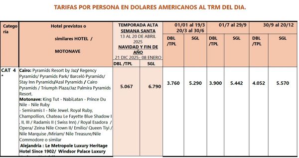 Llegada al Aeropuerto Internacional de El Cairo. Tramites de visado, inmigración y aduana y con asistencia de nuestro representante, Traslado al hotel de la categoría elegida, Llegada al hotel, distribución de las habitaciones y alojamiento.